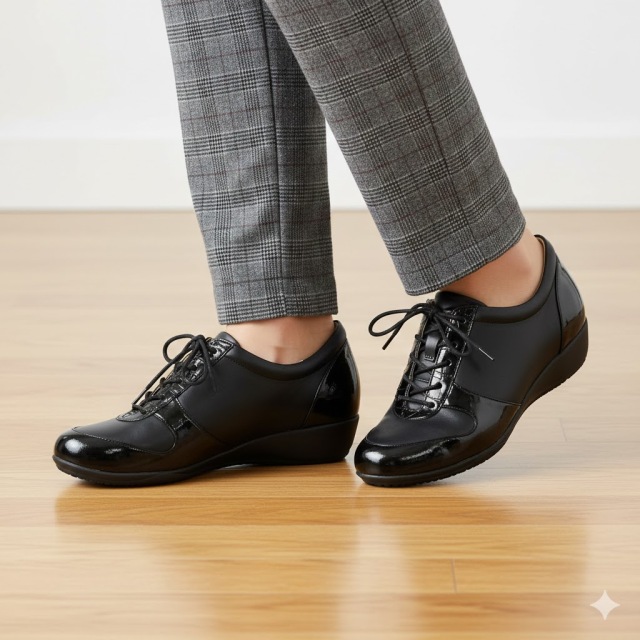 内側ファスナーで脱ぎ履きも簡単で、