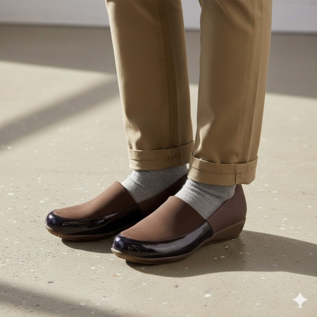 フットウェア:ストッキングやわらかくフィットするシューズ