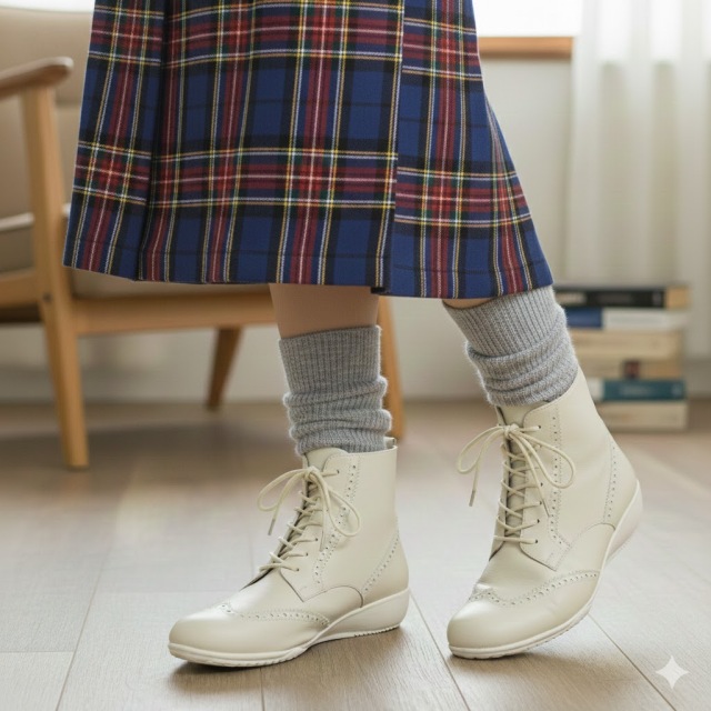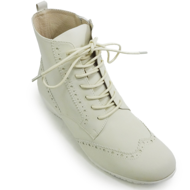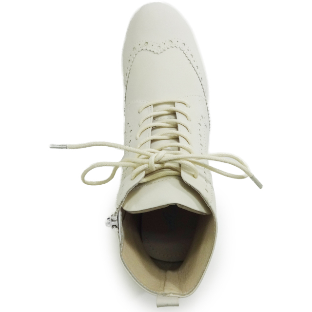 パッと目を引く、真っ白すぎないアイボリーカラー。ウィングチップや飾り穴が引き立ちます。ハイカットスニーカー感覚で履いていただけます。