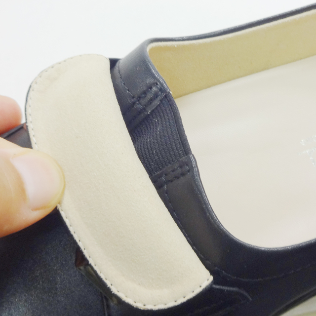 甲部分のゴムは、着脱時の伸縮と歩いたときの脱げにくいフィット感を作る役割。